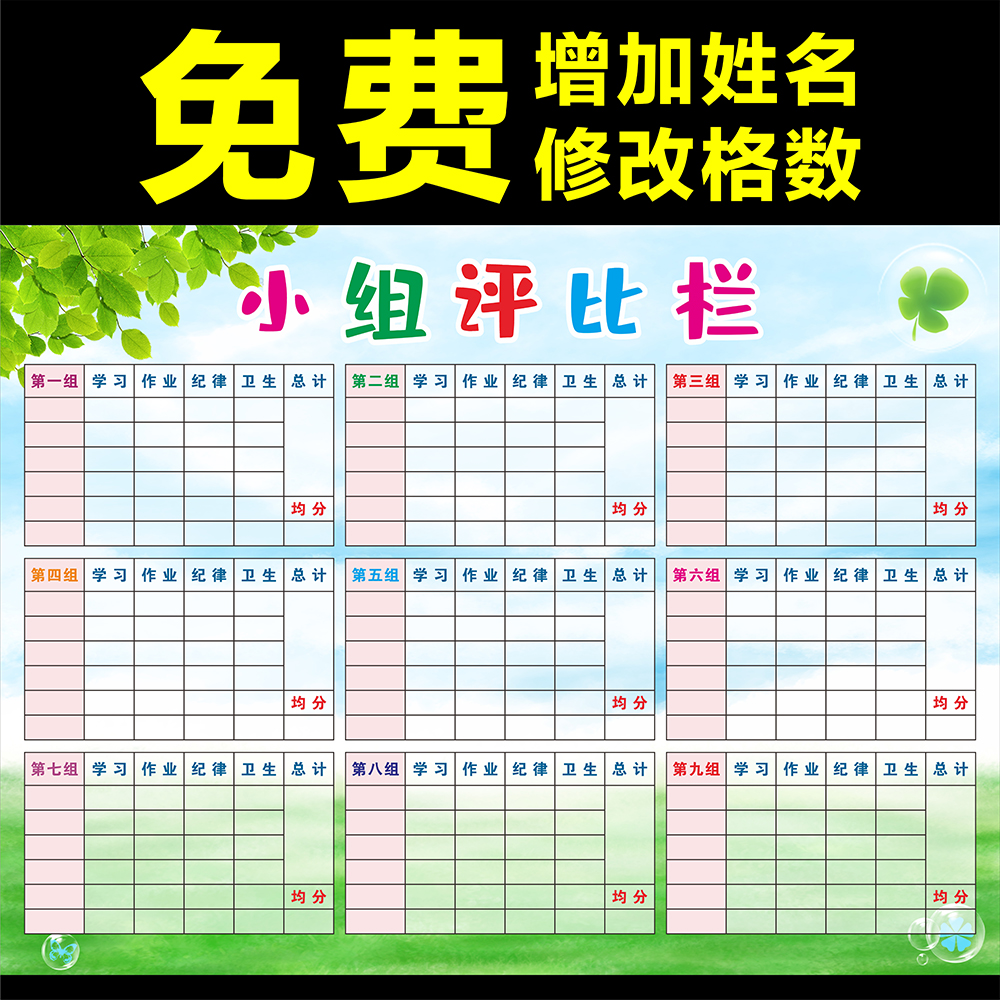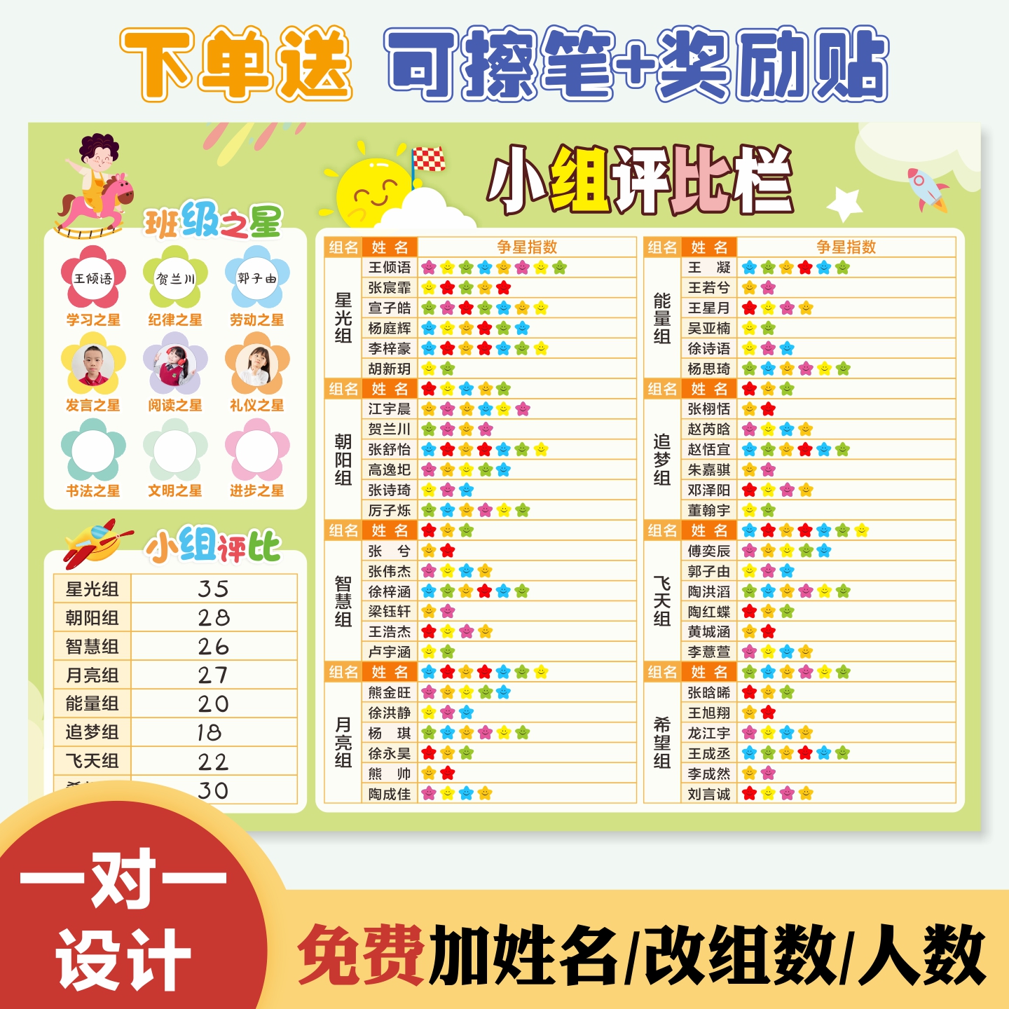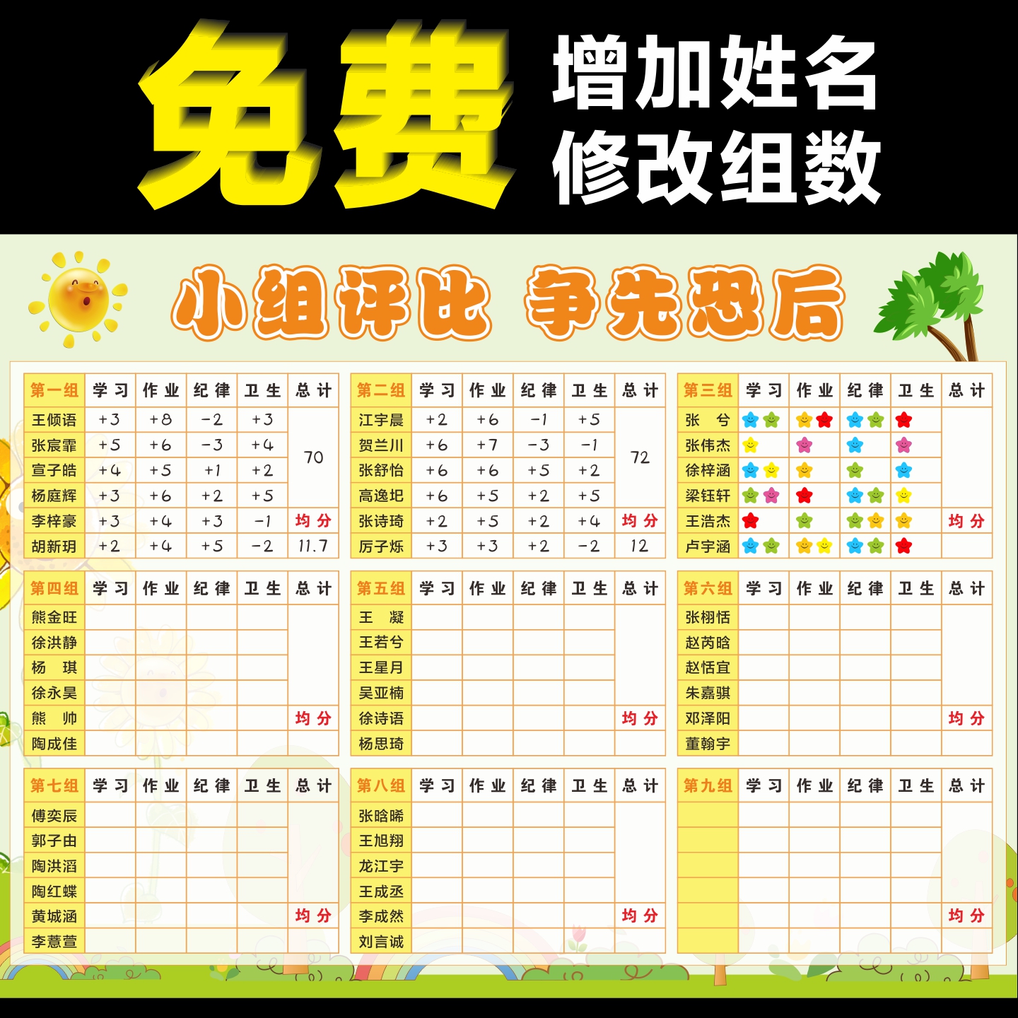 班级小组评比栏墙贴文化布置红花台光荣榜表扬栏你追我赶卡通分表