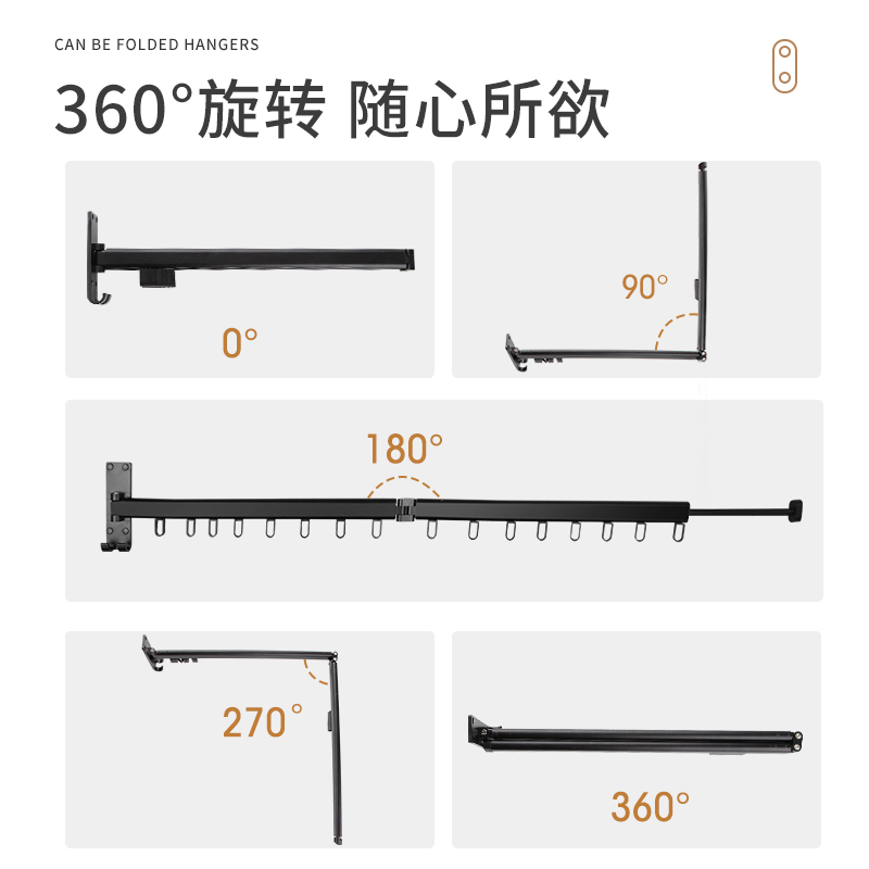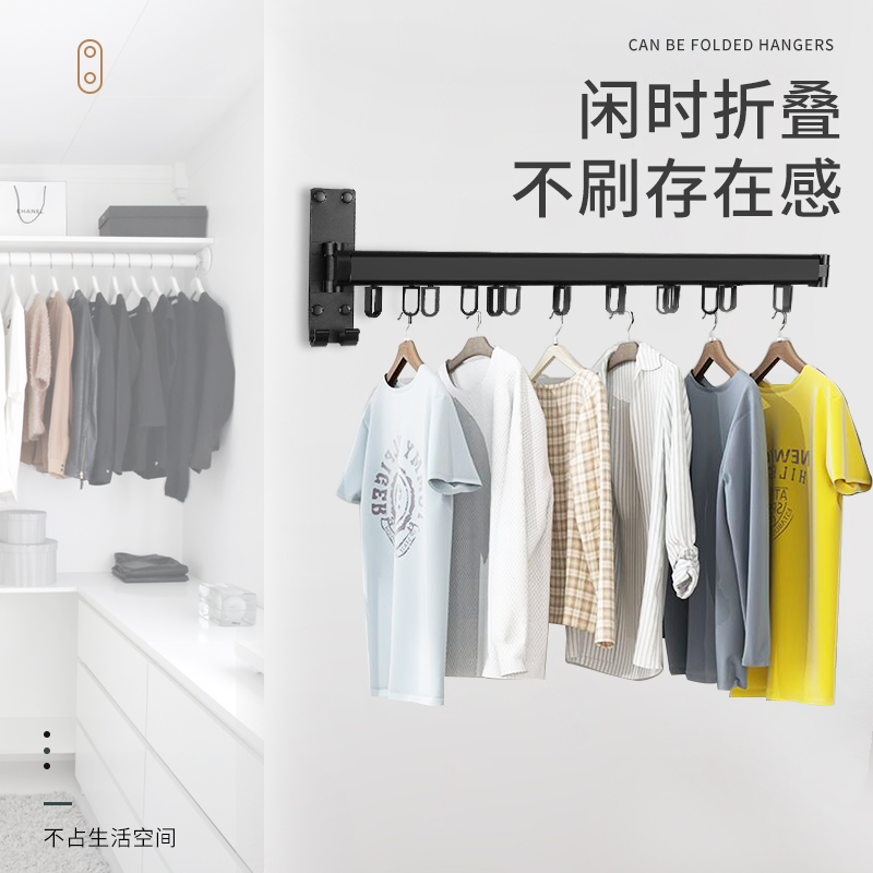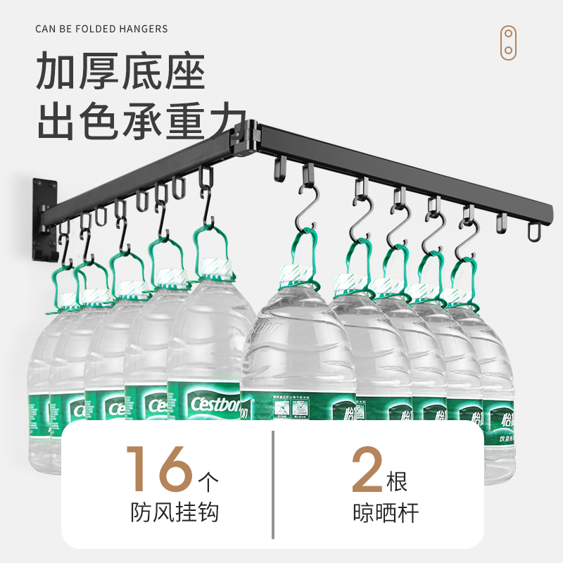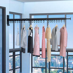 阳台横杆晾衣架侧装 可伸窗外折叠支架免打孔墙上固定挂衣杆墙壁式