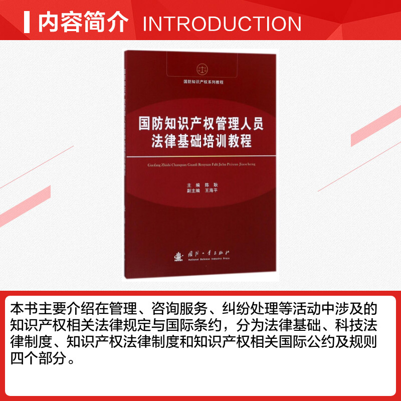 著作 著 国防工业出版 编者 社 图书籍 陈耿 新华书店正版 国防知识产权法律基础培训教程 法学理论社科