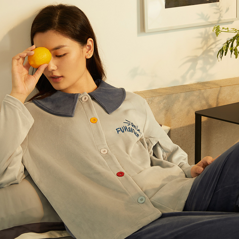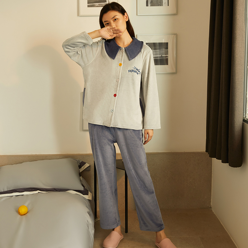 康妮雅珊瑚绒睡衣女秋冬新款 可外出 加厚保暖可爱家居服法兰绒套装