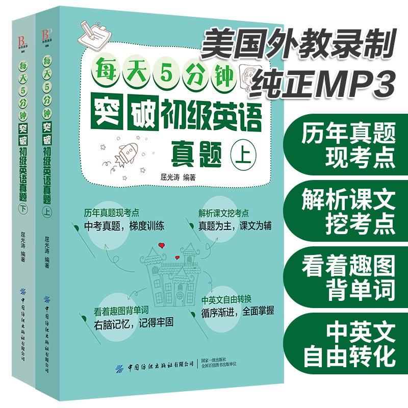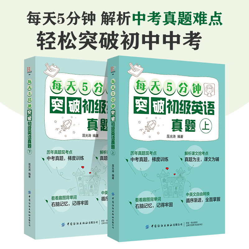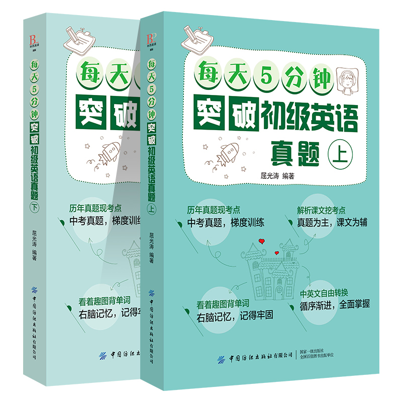 每天5分钟突破初级英语真题 上下册 英语口语自学快速学语法 英语口语词汇大全 全2册 英语自学教程 初中高中英语辅导教材 套装