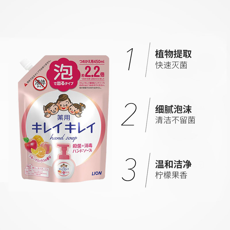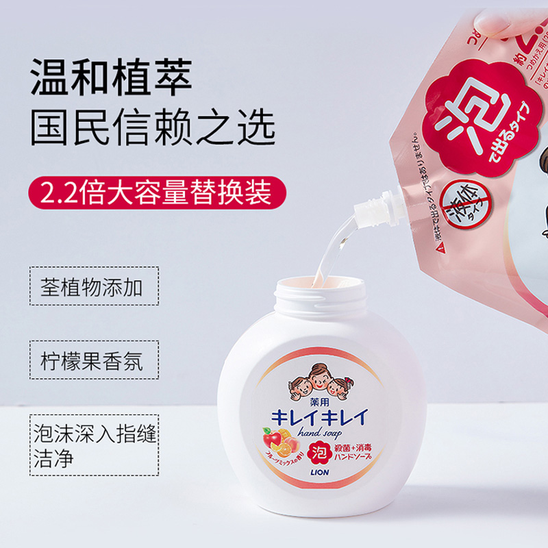 泡泡消毒水果 日本狮王儿童宝宝泡沫洗手液替换450ml袋装 自营