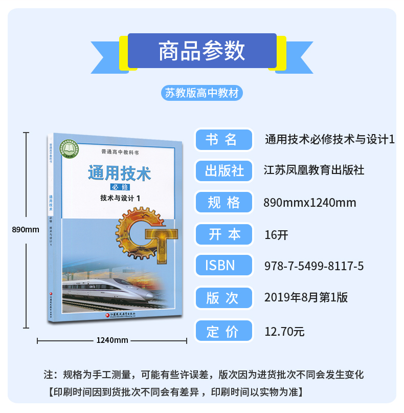 江苏凤凰教育出版 2025新改版 普通高中教科书通用技术必修1技术与设计课本教材教科书苏教版 高中通用技术必修技术与设计1 社 苏教版
