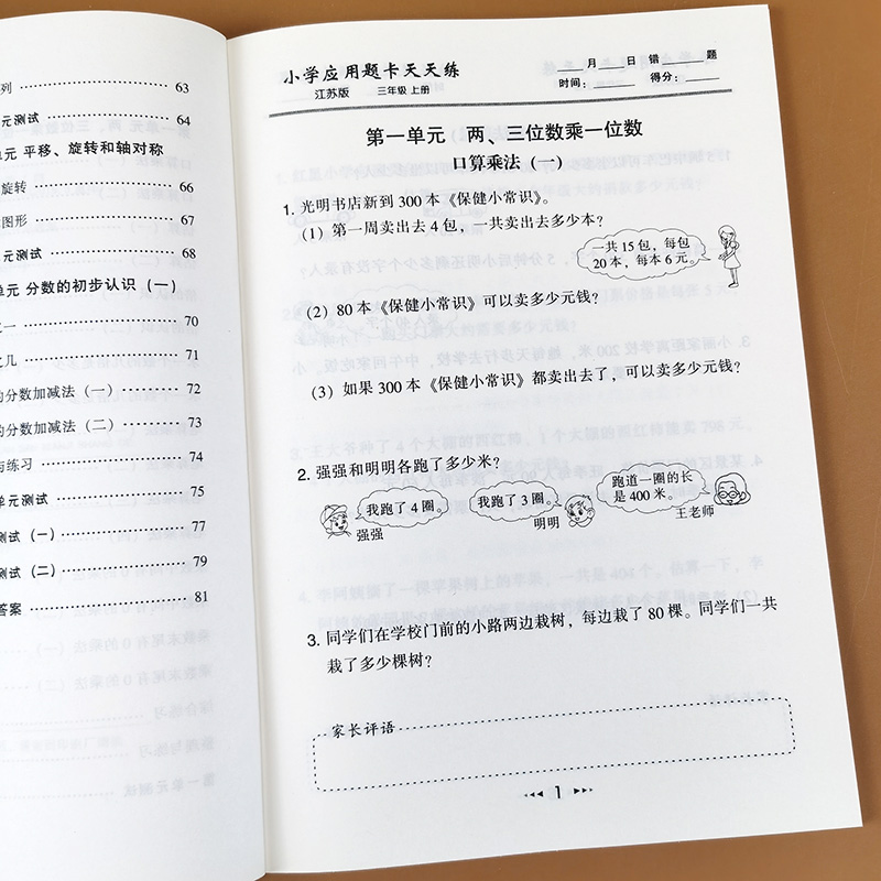 教材练习册同步专项训练计算题混合应用题强化训练单元 三年级上册应用题卡天天练小学3年级数学练习题苏教版 练习与测试 江苏版