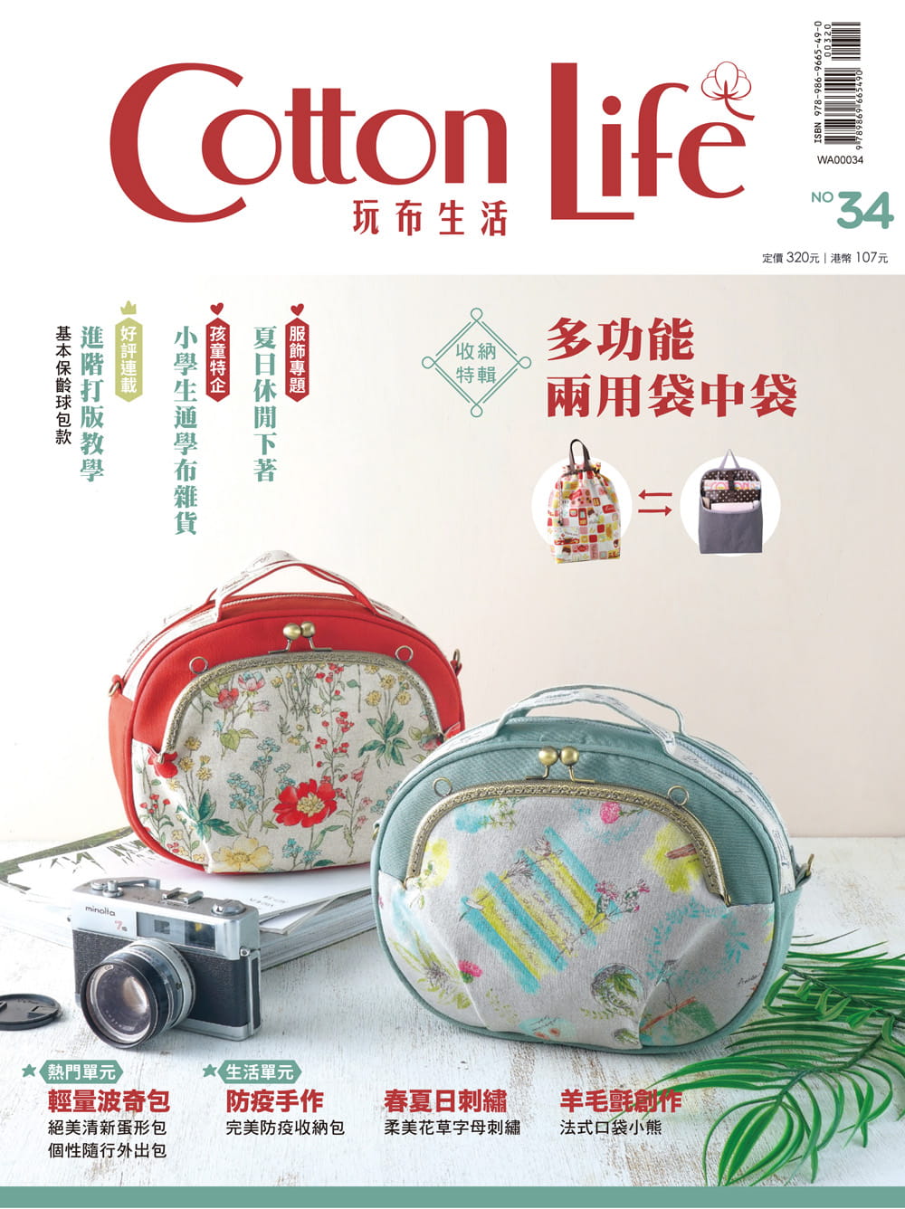 进口书 Cotton 原版 小学生通学布杂货生活风格 夏日休闲下着 No.34:多功能两用袋中袋 玩布生活 Life 上新 预售正版