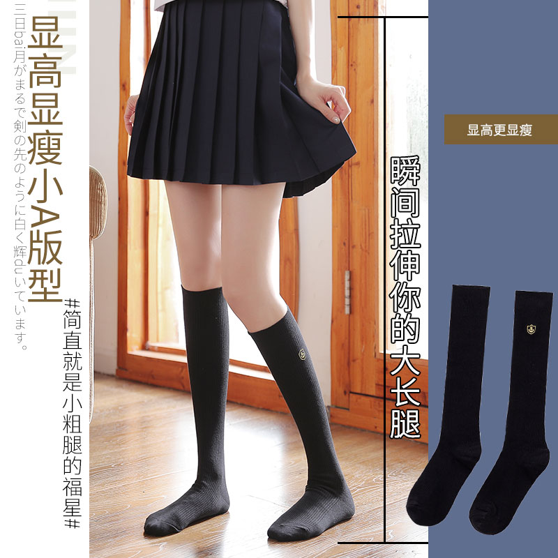 JKN压力小腿袜女春秋强压显瘦腿jk袜子黑色过膝高筒半中筒长筒袜