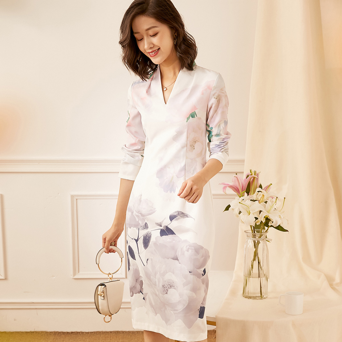优雅中长款 法式 优雅白色连衣裙名媛女神399 新款 秋季