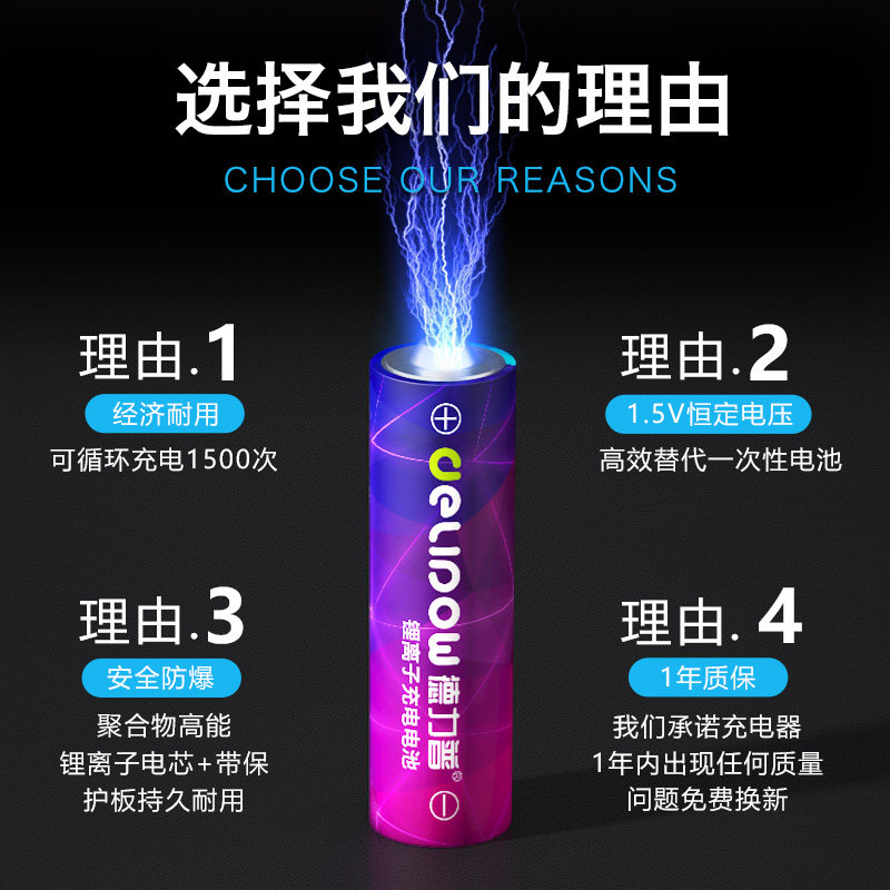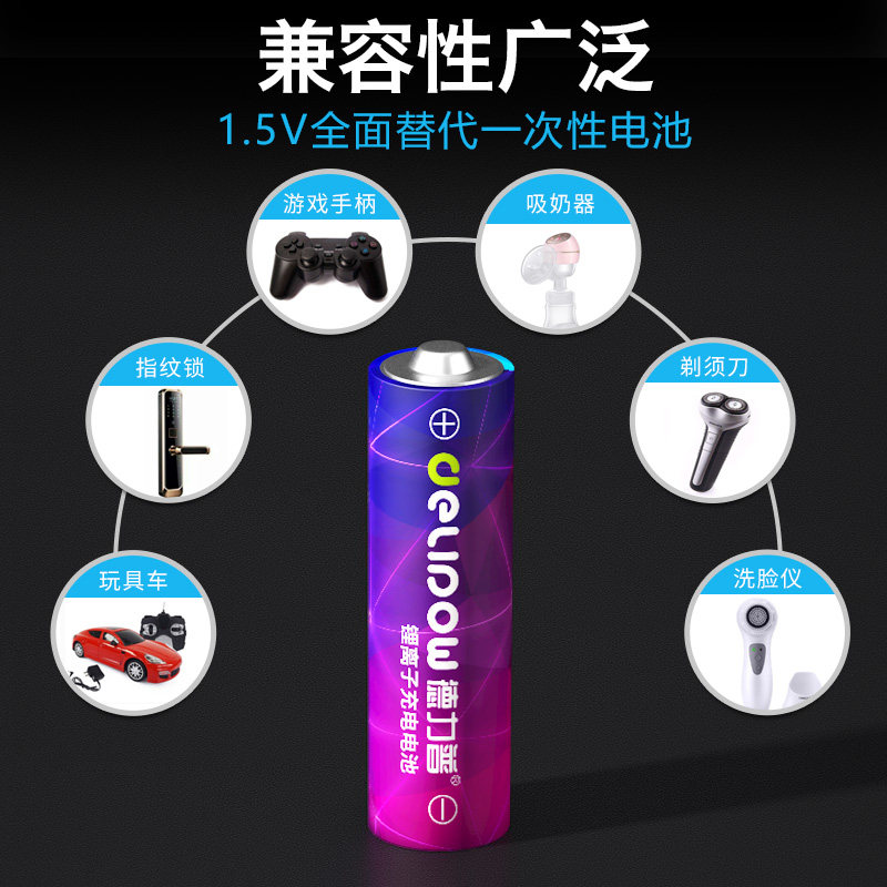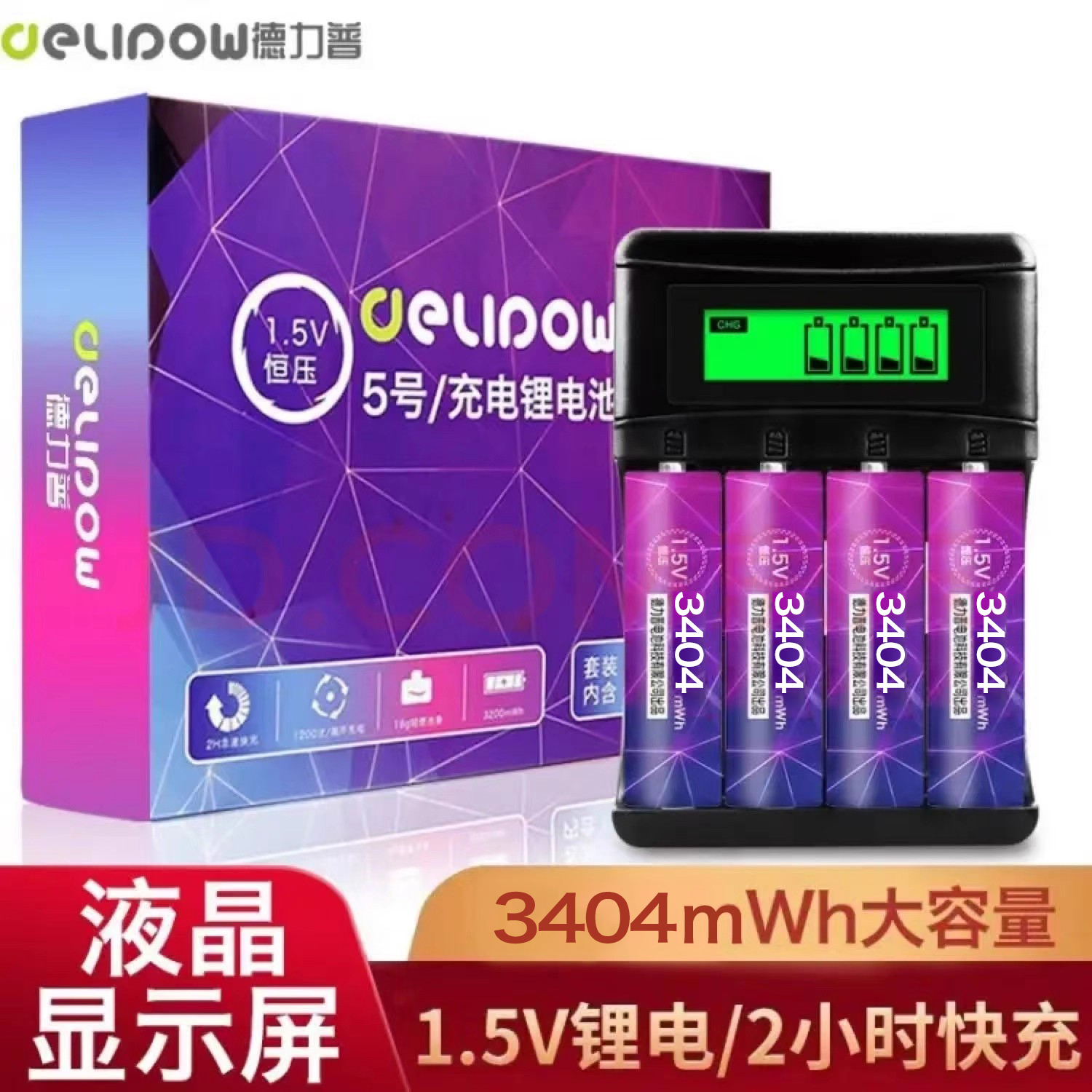 德力普充电电池5号锂电大容量五七号玩具相机指纹锁充电器7号1.5V