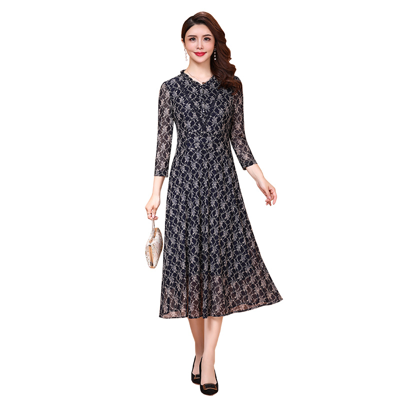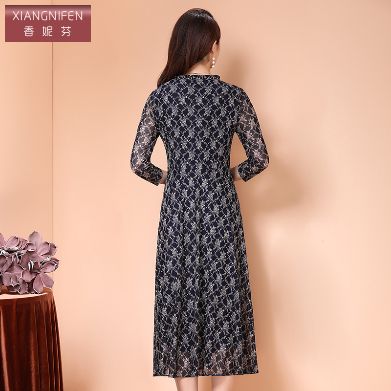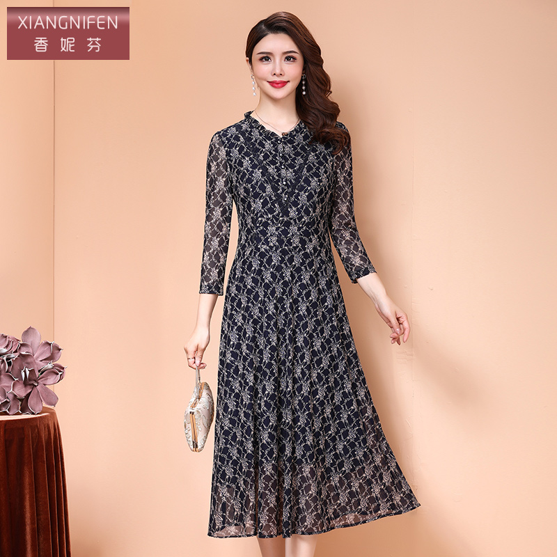 香妮芬贵夫人气质连衣裙2025秋季 高端贵气台湾纱遮肚显瘦裙子 新款