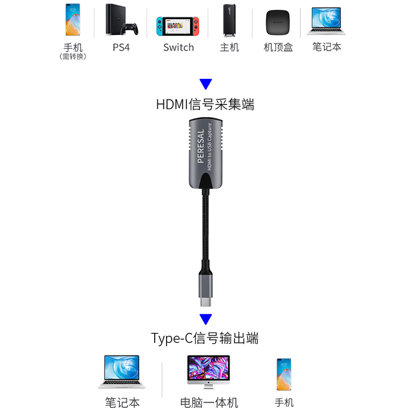 Type c高清采集卡适用于机顶盒电脑主机连接三星红米荣耀手机视频显示器