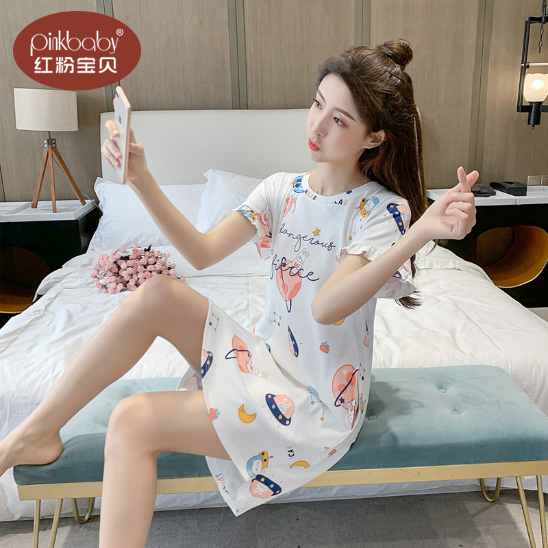 夏天全棉可外穿新款 睡衣女款 可爱卡通睡裙薄款 纯棉短袖 家居服 夏季