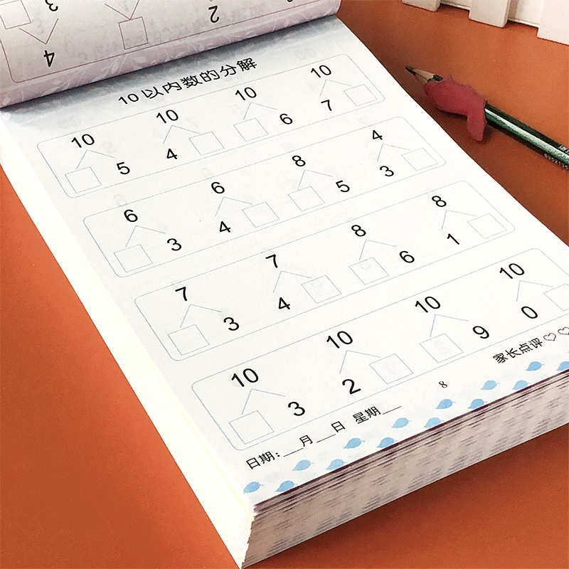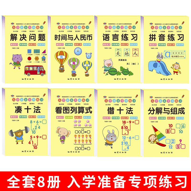 8本幼小衔接教材全套学前班数学练习题幼儿园中班大班练习册一日一练10以内加减法20凑十法借十法平十法破十法分解与组成口算题卡
