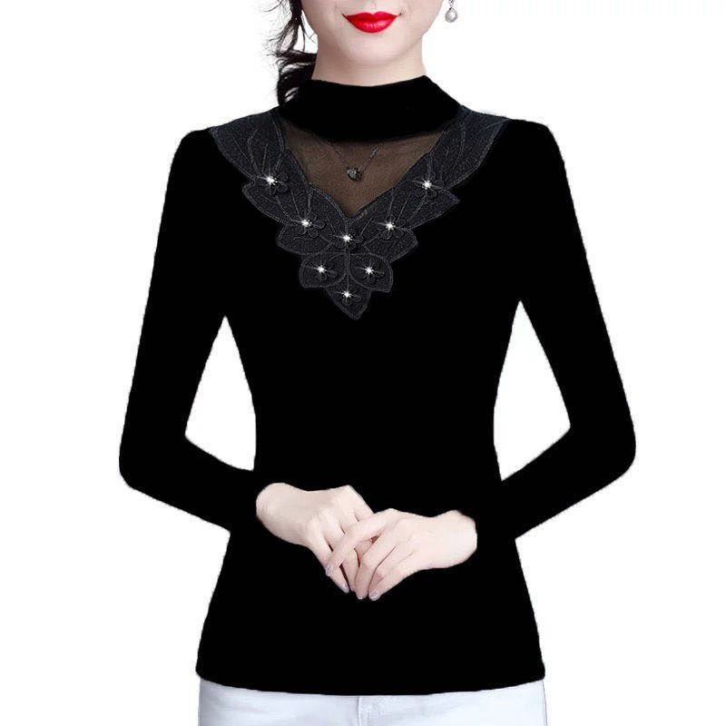 打底衫 薄款 女长袖 网纱T恤女小衫 保暖蕾丝上衣 秋冬新款 加绒