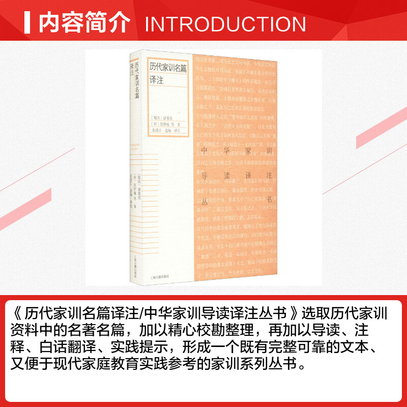 图书籍 社 等 编 家庭教育社科 余进江 诸葛亮 著 上海古籍出版 历代家训名篇译注 新华书店正版 蜀汉