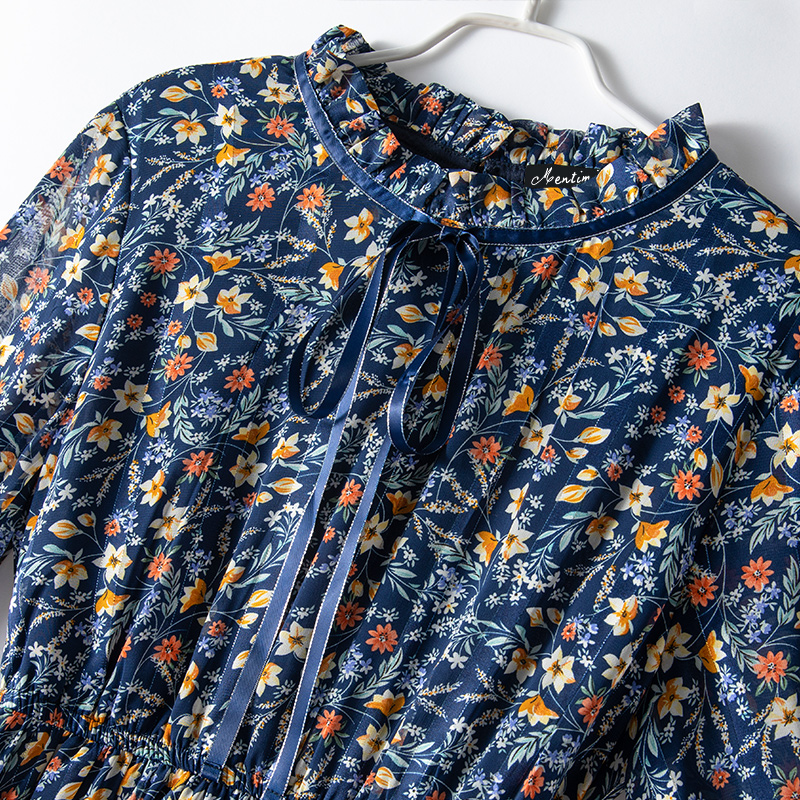 v领长袖 2025新款 显瘦休闲收腰气质短裙胖mm 碎花连衣裙女秋季 大码