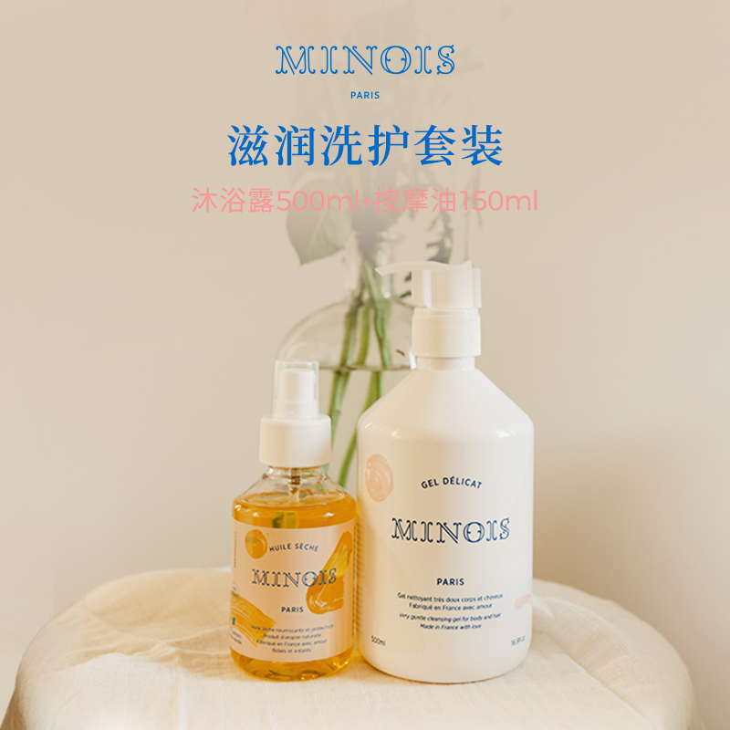 法国minois巴黎宝宝婴幼儿专用 按摩油 洗发沐浴按摩二合一沐浴露