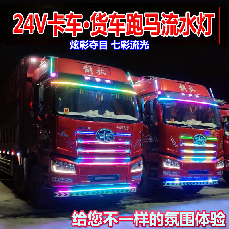 12V 24V伏通用七彩跑马灯条4.2米货车轻卡中网车顶流光霹雳游侠灯