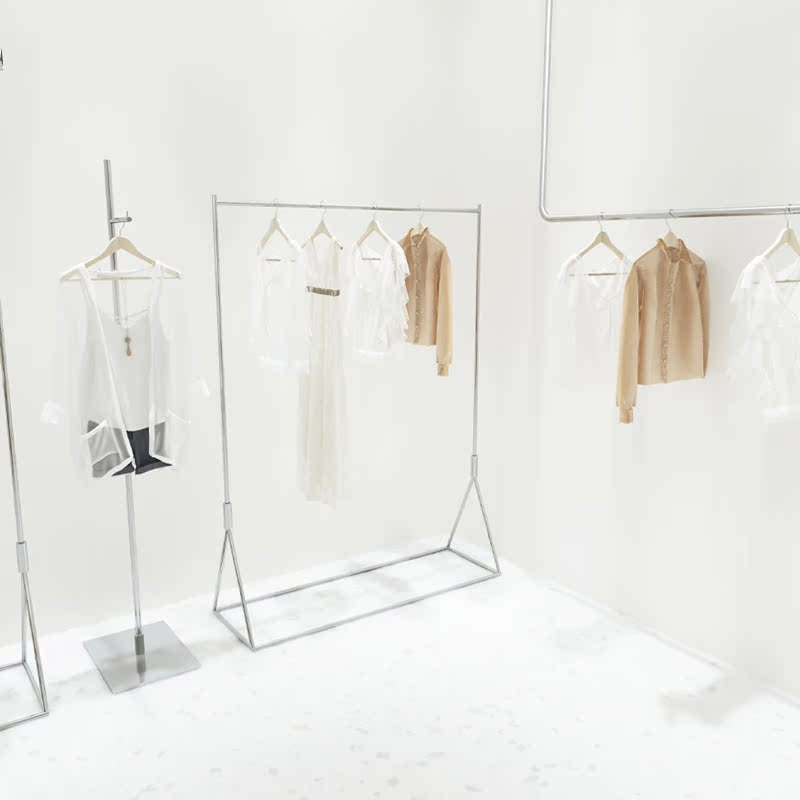 店银色专用陈列货架衣服架子 挂衣杆女装 服装 店展示架不锈钢落地式