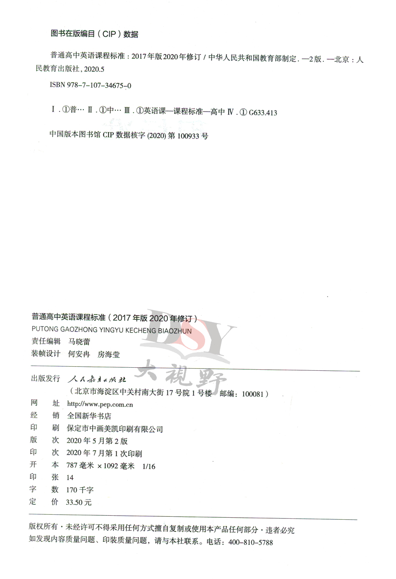 2020年修订 2017年版 中华人民共和国教育制定 普通高中课程标准 社 新版 人民教育出版 普通高中英语课程标准