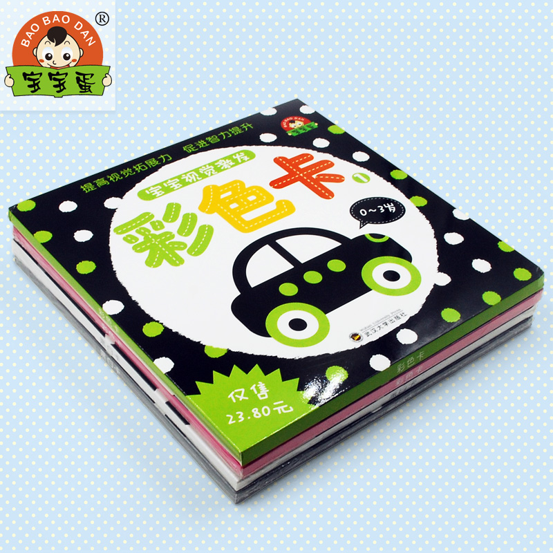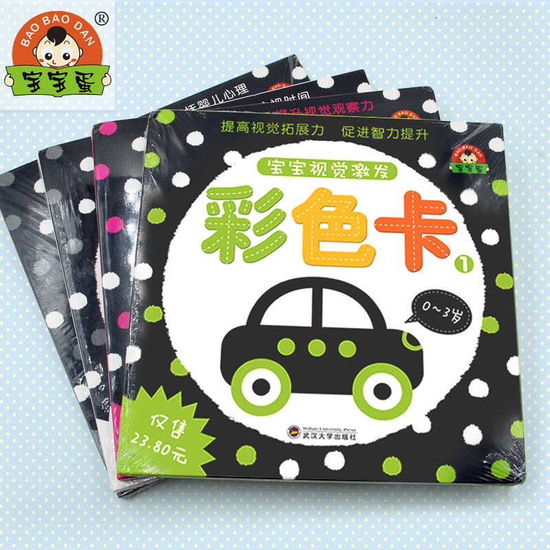 新生儿游戏书0 宝宝视觉激发卡彩色卡 12个月早期启蒙训练 3个月婴儿早教书籍颜色认知大卡片色彩启蒙图片 黑白卡共4盒训练玩具0