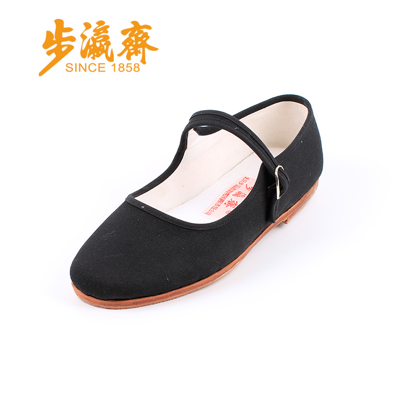 工作上班平底浅口民族风黑布鞋 步瀛斋老北京布鞋 女春秋一字扣单鞋