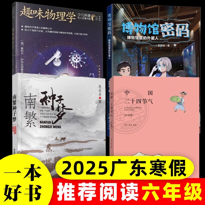 阅读书目正版 2025广东省寒假读一本好书六年级全套5册博物馆密码 南繁种子梦趣味物理学中国二十四节气绿野枪声小学生五六年级推荐