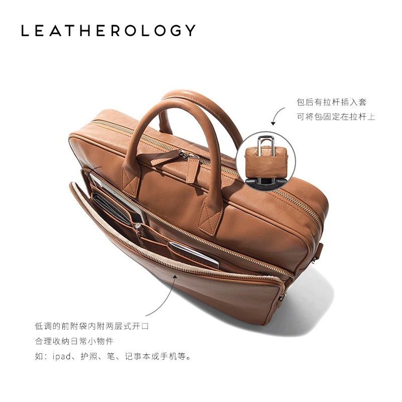 LEATHEROLOGY真皮手提公文包商务包男大容量出差包15寸横款 电脑包