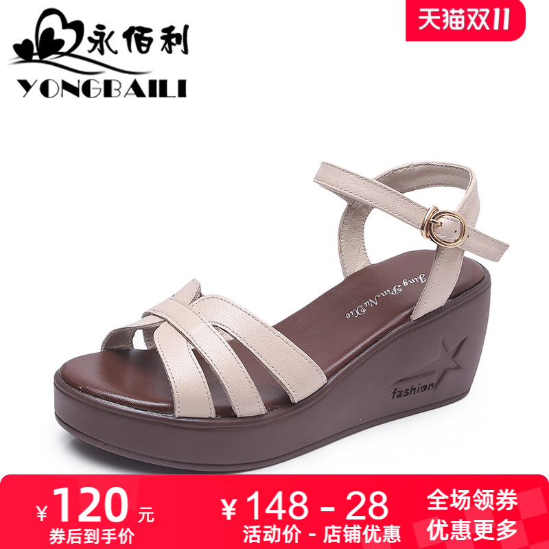 松糕女鞋 女中空原创手工罗马皮鞋 牛皮厚底坡跟高跟凉鞋 2025夏新品