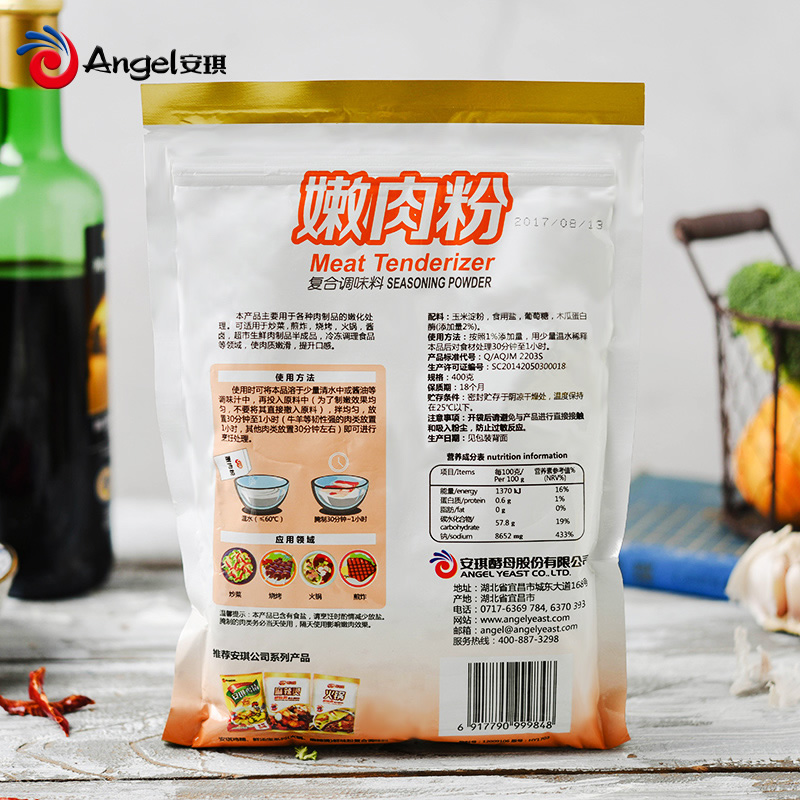 安琪嫩肉粉400g含木瓜蛋白酶炒菜烧烤腌制火锅煎炸酱卤食用松肉粉