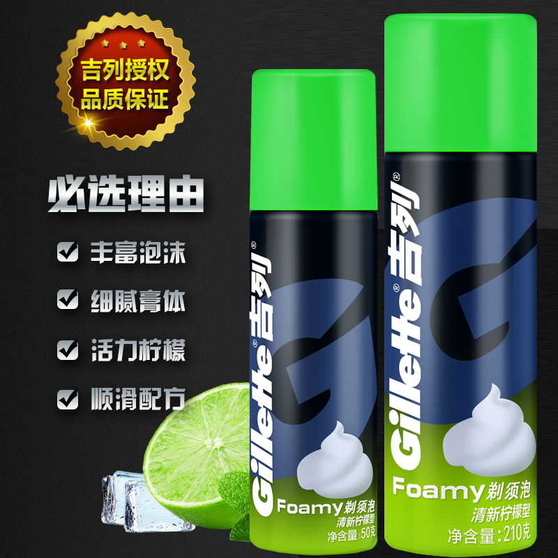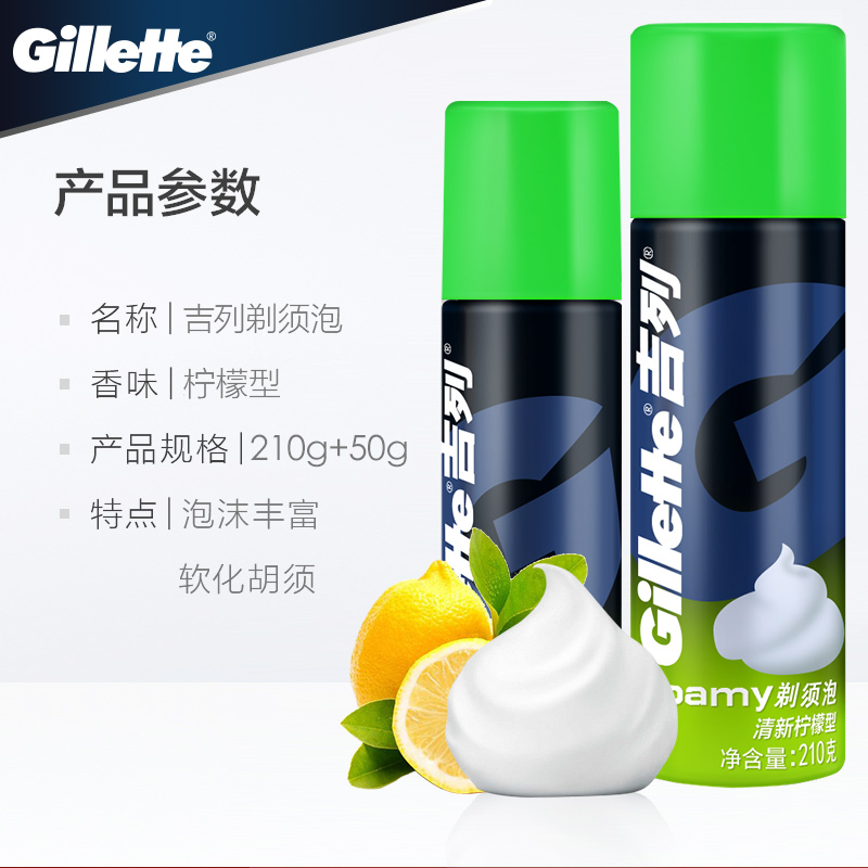 吉列剃须泡沫210g 刮胡泡剃须膏软化胡须送50g 清新柠檬型吉利男士