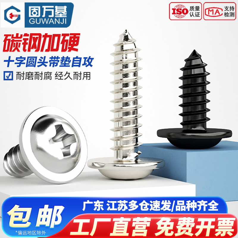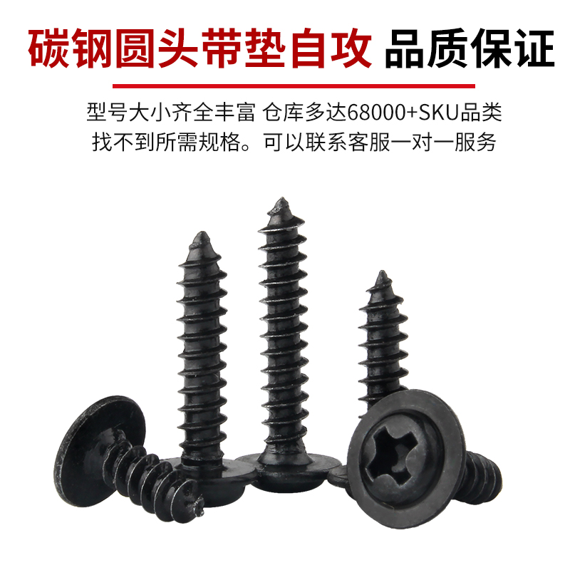 镀镍十字圆头带垫自攻螺丝钉铁黑盘头带介尖尾螺钉M1.7M2M3M3.5M4