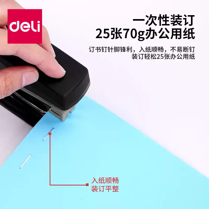 得力文具订书机标准型大小号加厚层办公商务白领用品省力定书机12号钉基础型学生资料纸手动多功能装 订器0309