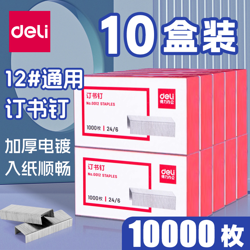 不锈钢订书钉订书机钉子通用12号订书针24 得力订书钉25页订书针5盒装 6办公文具用品订书机厚层钉子 10盒