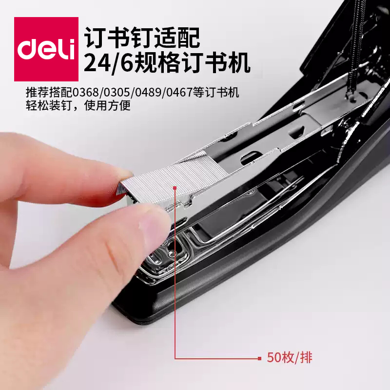 得力可旋转订书机50页学生用订书器钉书机大号重型加厚标准型多功能办公用省力定厚书订中缝装 订用品订书针