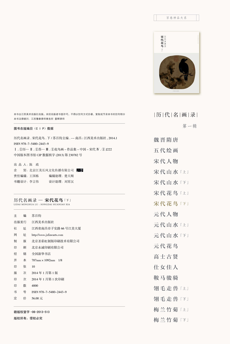 宋代花鸟下 江西美术出版 中国花鸟画 配历代画理画论 社 国画临摹画册绘画书籍 百卷神品大系历代名画录