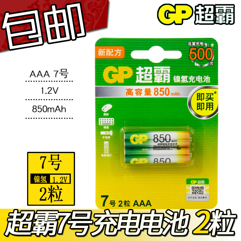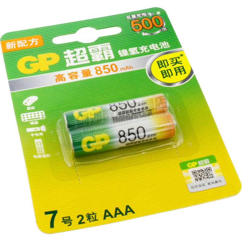 GP超霸七号7号2节可充电电池850毫安LSD镍氢AAA高容量环保遥控器