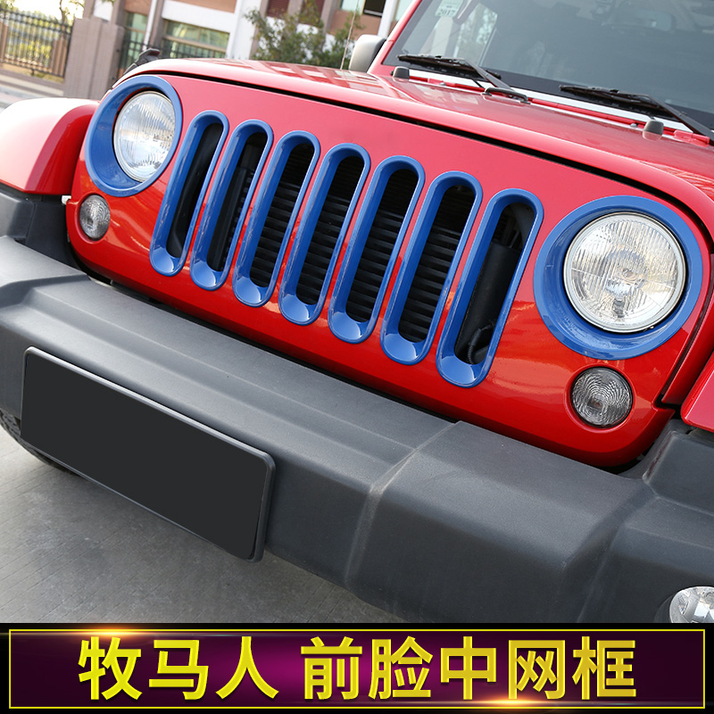 前脸中网装 Jeep牧马人大灯改装 饰 17款 JK牧马人前大灯罩专用于07