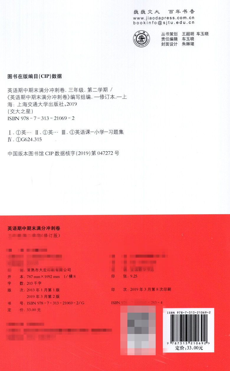 扫码 小学英语测试卷 期中期末满分冲刺卷 配套英语教辅 上海版 听听力 3年级下 三年级第二学期 英语N版 交大之星 新版