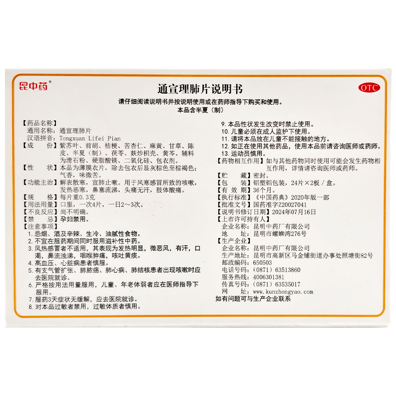 昆中药通宣理肺片48片流鼻涕鼻塞止咳发热头痛咳嗽药感冒药