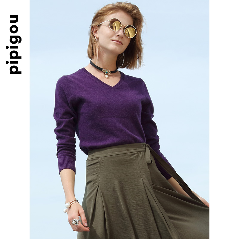 皮皮狗正品 毛衣 V领多色打底基础套头女士羊绒衫
