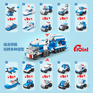 儿童益智拼装 警车汽车飞机模型男孩消防车坦克挖掘机拼图积木玩具