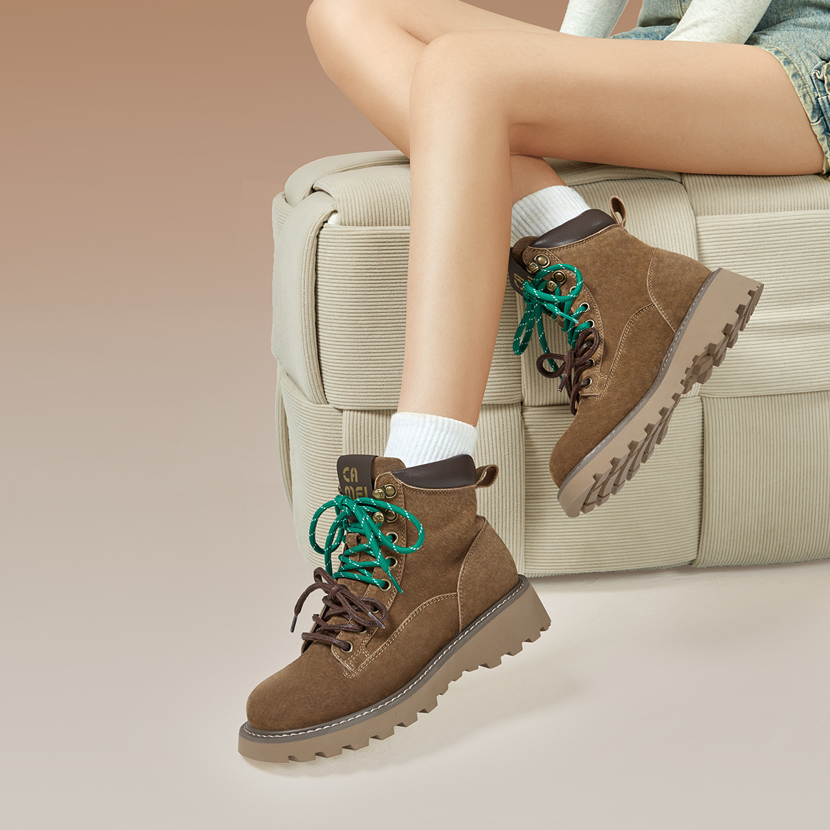 2025秋季 时装 新款 短靴女款 靴 大黄靴登山鞋 骆驼马丁靴厚底女鞋
