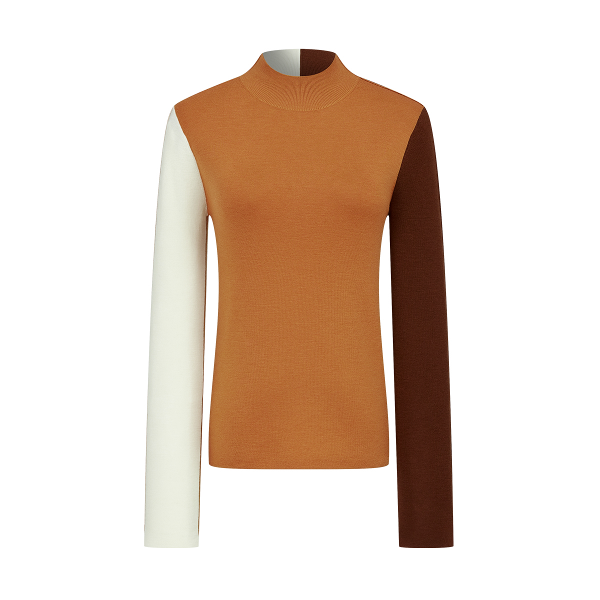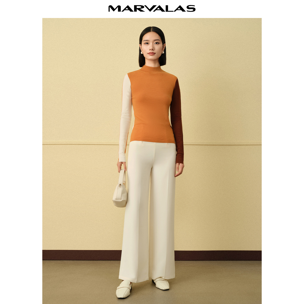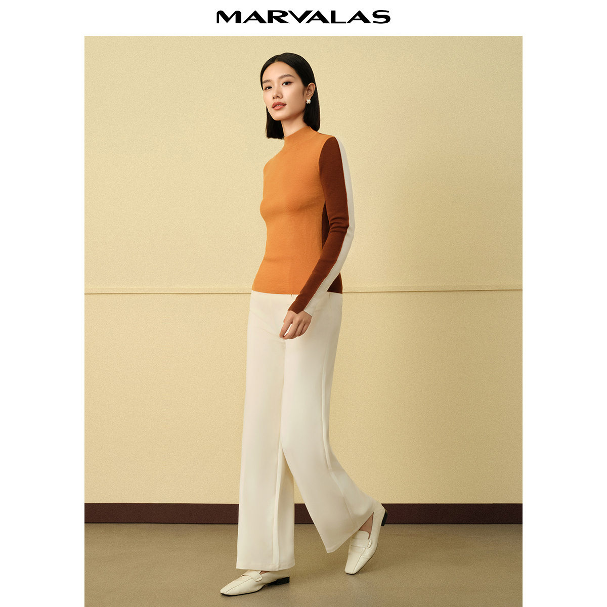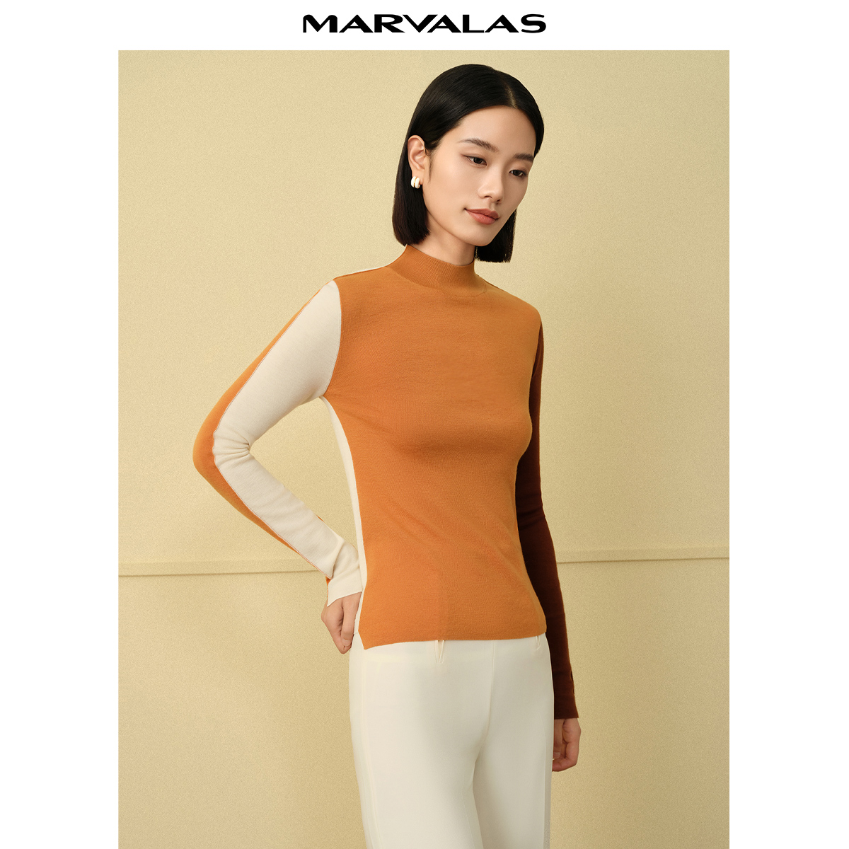 拼色套头衫 曼德诗100%绵羊毛针织衫 气质半高领修身 新品 女 2025秋季