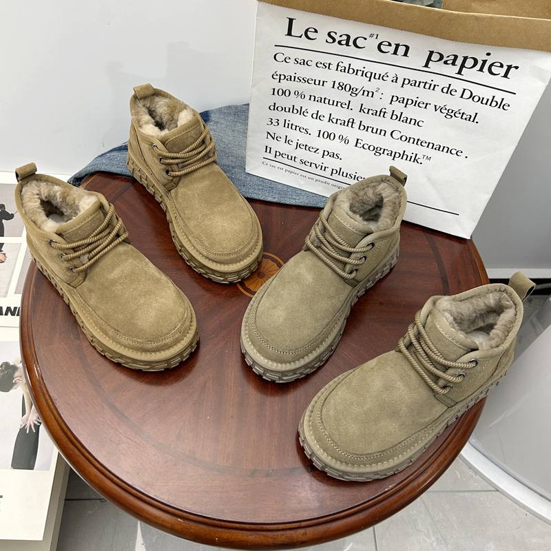 男情侣款 雪地靴女冬季 皮毛一体短筒厚底纯羊毛面包鞋 保暖棉鞋 新款