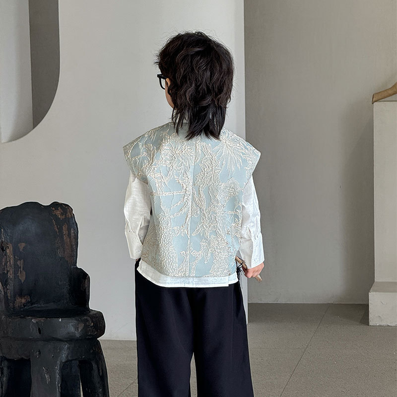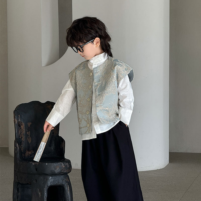 民族演出服潮 秋冬新中式 汉服男童新款 中国风儿童马甲礼服套装