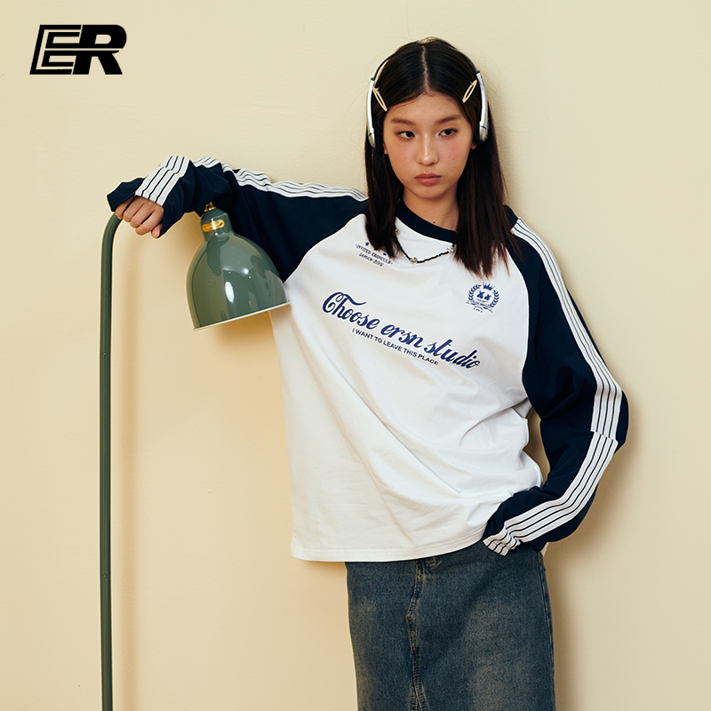 长袖 条纹t恤秋季 ER插肩袖 宽松情侣潮牌休闲上衣 杨博文同款