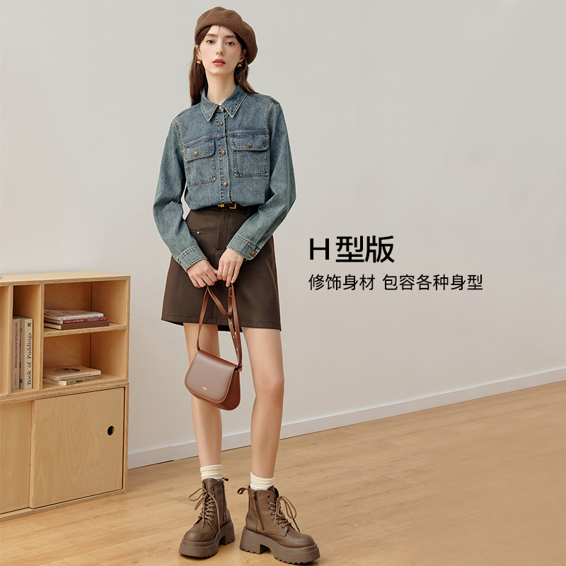KBNE牛仔短外套女休闲百搭夹克2025秋新款 卡其色今年流行半裙 爆款