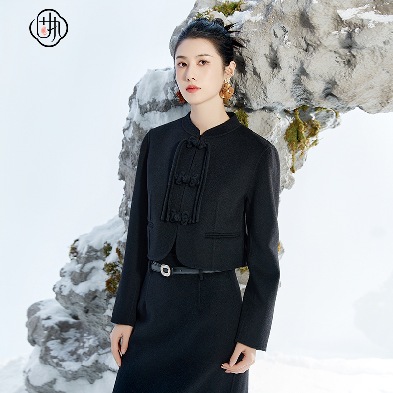 新款 外套女装 中式 双面毛呢短款 国风气质立领盘扣长袖 固执春季