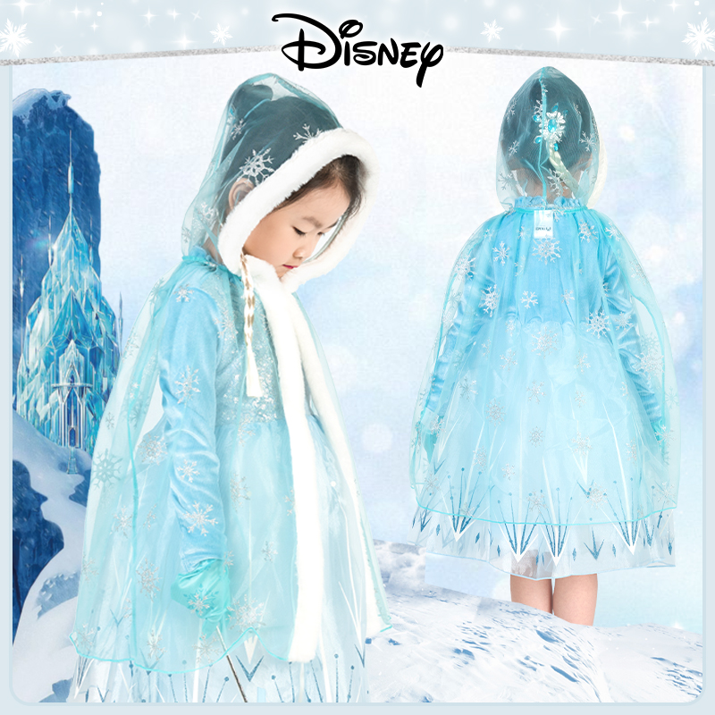 迪士尼女童艾莎披风套装 手套假发辫子小女孩cosplay演出服 秋冬款