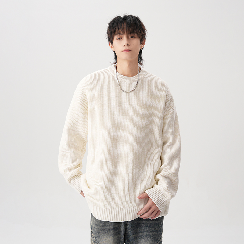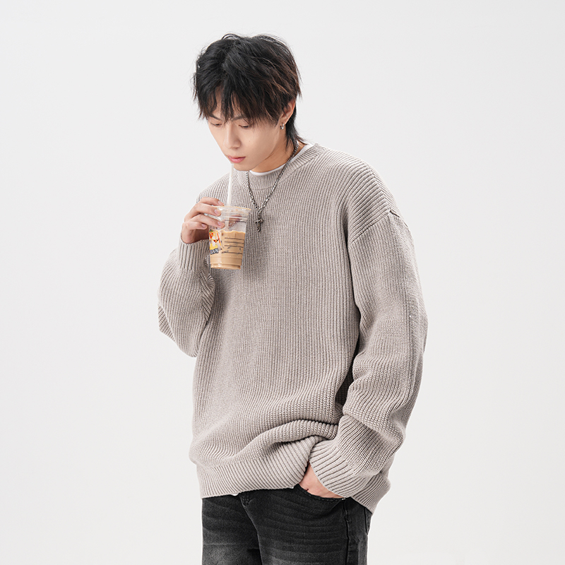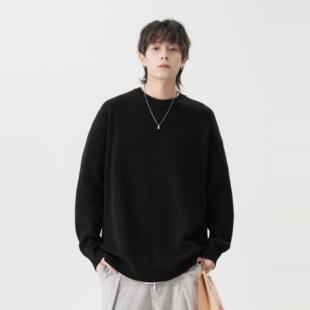 上衣胖mm秋冬 胖妹妹宽松圆领针织衫 软糯慵懒毛衣女大码 内搭打底衫